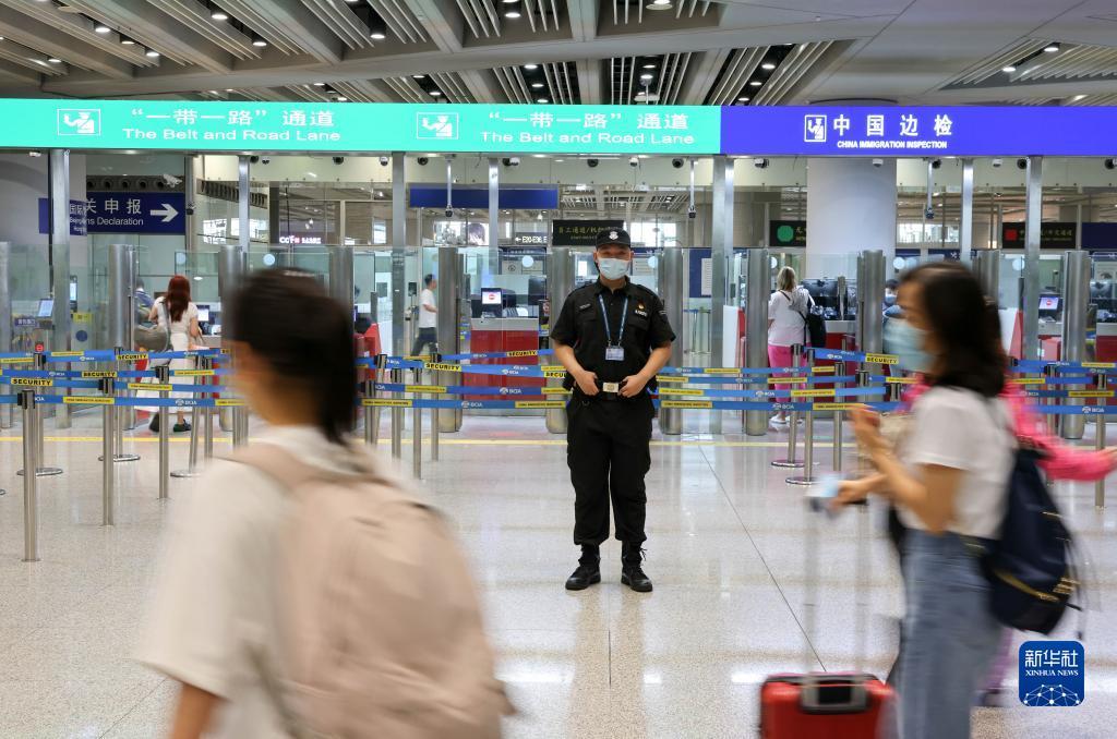 8月24日,搭客從首都機場3號航站樓邊檢出境執勤現場前走台灣機場接送過。